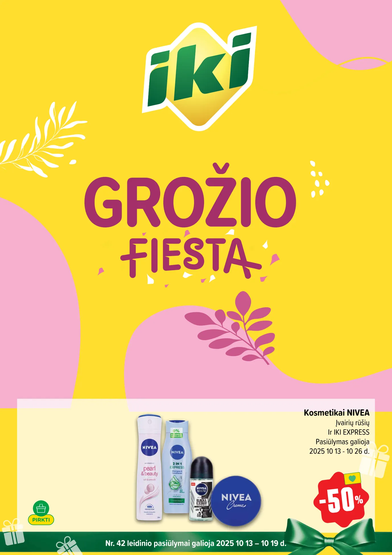 IKI akcijų leidinys "Grožio fiesta" nuo spalio 13 d. IKI Grožio fiesta! NIVEA kosmetikai įvairių rūšių IKI EXPRESS parduotuvėse pasiūlymas galioja. Nuolaida iki -50% prekėms.