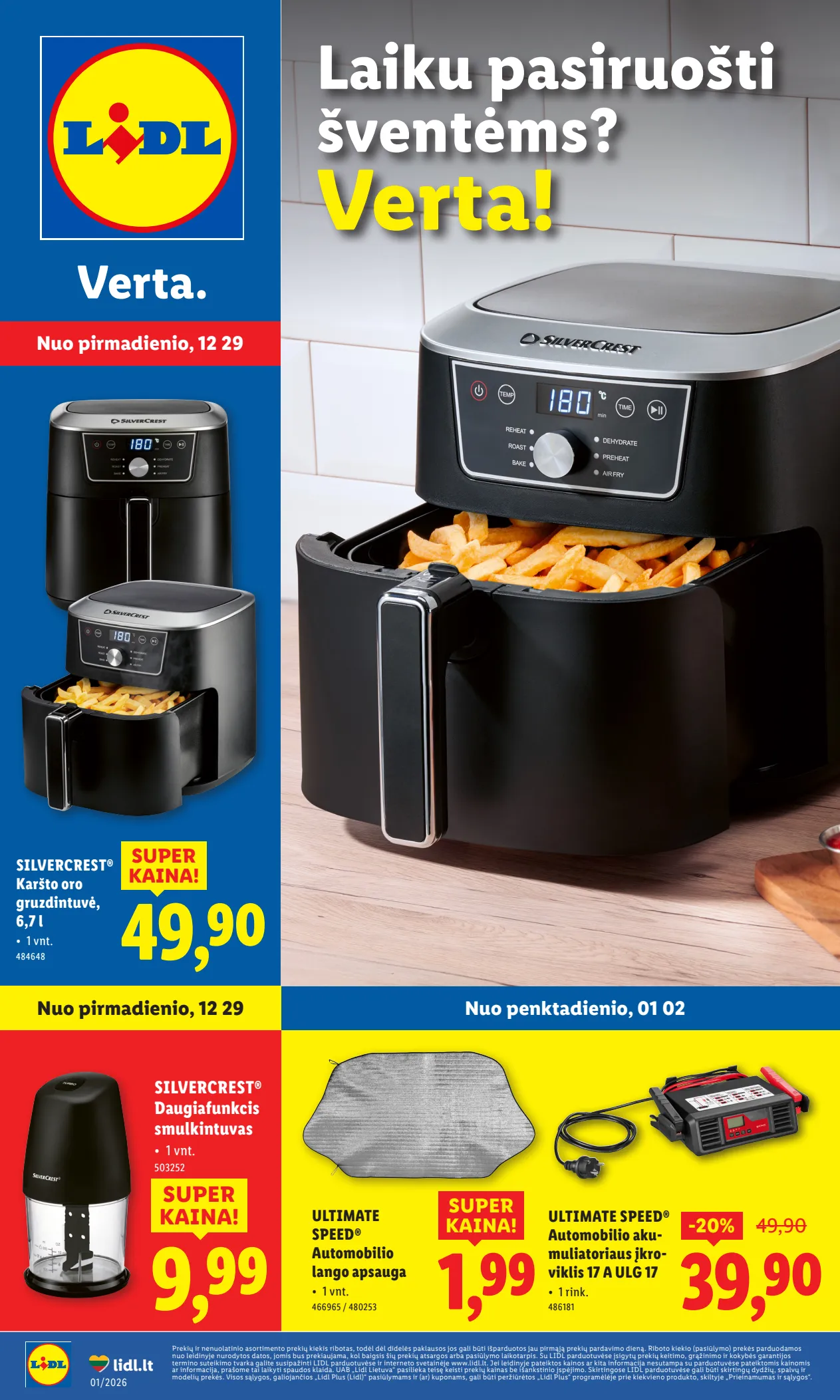 LIDL ne maisto prekių leidinys nuo gruodžio 29 d. Lidl pasiūlymai: SILVERCREST karšto oro gruzdintuvė už 49.90€, daugiafunkcis smulkintuvas už 9.99€, automobilio lango apsauga už 1.99€, automobilio akumuliatorius -20%.